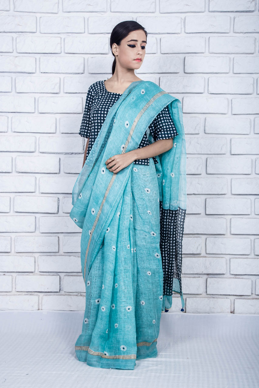 Handloom linen saree