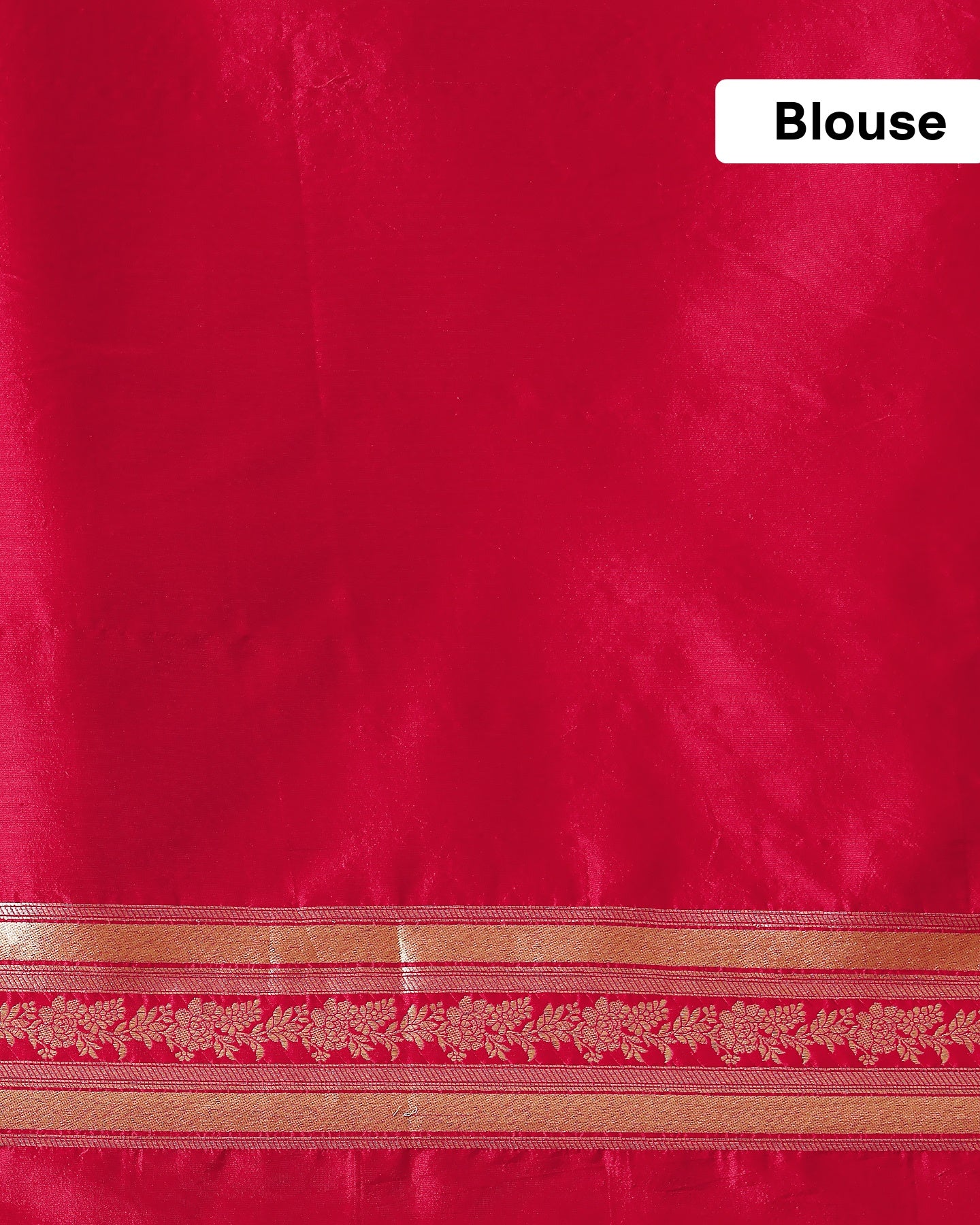 Crafted in the heart of banaras, this exquisite handloom katan silk saree is a celebration of timeless heritage and regal artistry. Woven entirely by hand, each thread carries the essence of tradition passed down through generations of master weavers. The lustrous silk gleams with a rich zari sheen, capturing the light with effortless sophistication. Intricate floral motifs bloom across its expanse, echoing the poetry of ancient craftsmanship. Draped in deep red — a hue that signifies strength, grace, and divinity — the saree becomes more than attire; it is a statement of culture and luxury. Its texture is soft yet structured, flowing with dignified poise that enhances every movement. This banarasi masterpiece embodies the perfect union of heritage and haute elegance, where every weave tells a story of devotion, artistry, and timeless allure. A true heirloom — crafted not just to be worn, but to be remembered.