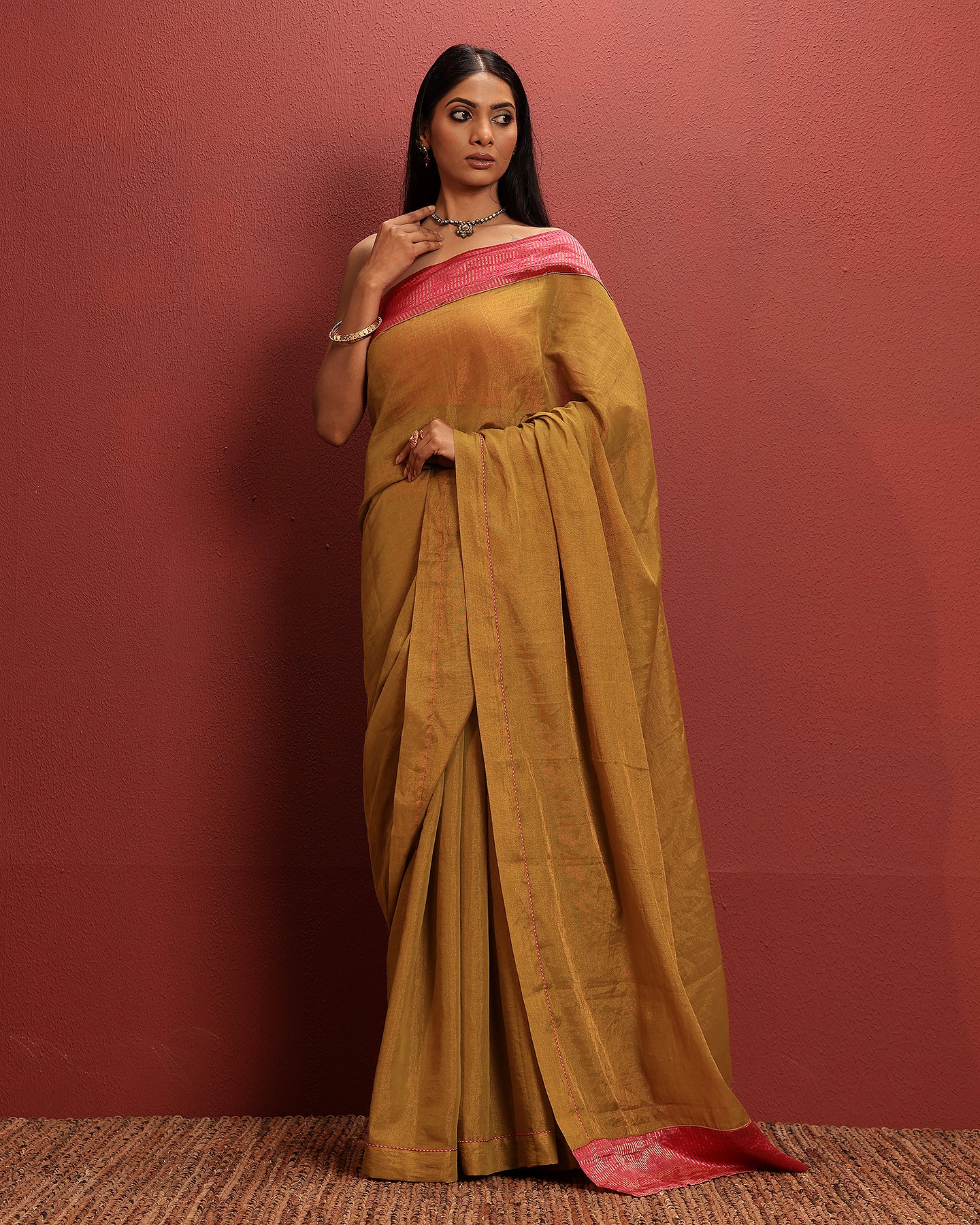 The mustard tissue stripes saree blends elegance with a touch of contemporary style. Made from lightweight and translucent tissue fabric, it features delicate stripes in a vibrant mustard hue. Ideal for festive occasions or cultural gatherings, it offers a graceful drape and subtle sheen, perfect for making a stylish statement."