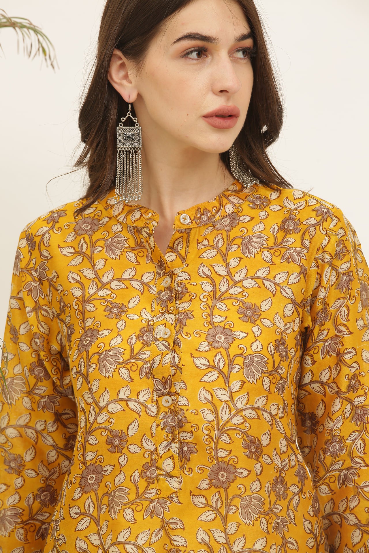Mandarin collar kurta with easy flow,carved kurta sides looks great on any occasion.It is paired with off white pants.