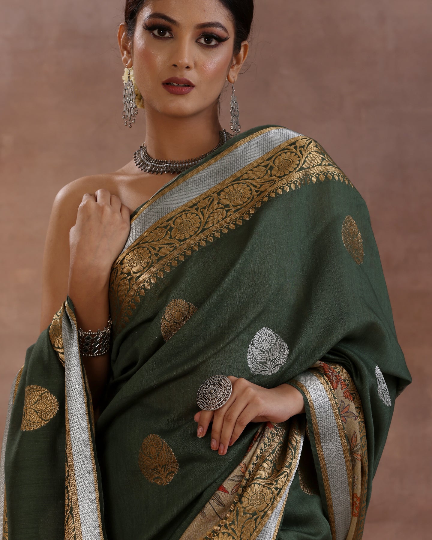 The fabric is great soft n silky the motifs are very beautiful. Very clear and pleasant. Loved the saari