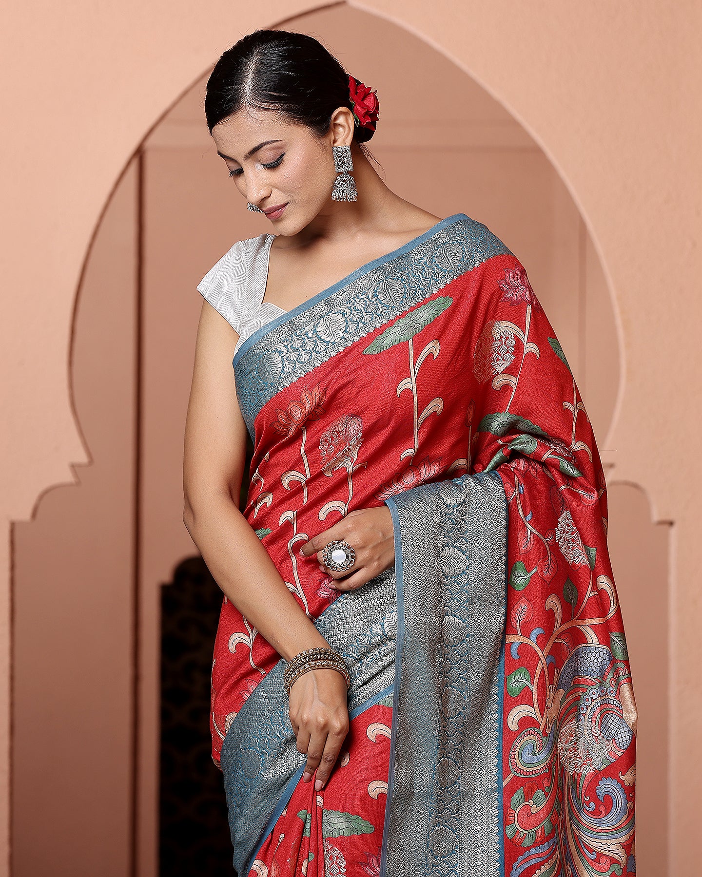 Amazing Saree, Easy to drape, beautiful flow, pure katan silk tissue fabric, more than enough width so that anyone who's Tall or with heels vlcan drape it. Wore this on a wedding ceremony and got many compliments. Looks great with contrast blouse.